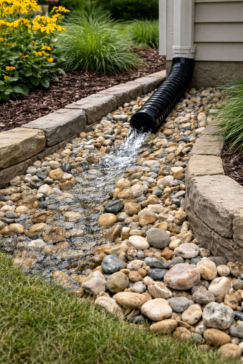 Helps manage water flow and prevent pooling around structures and landscaping.